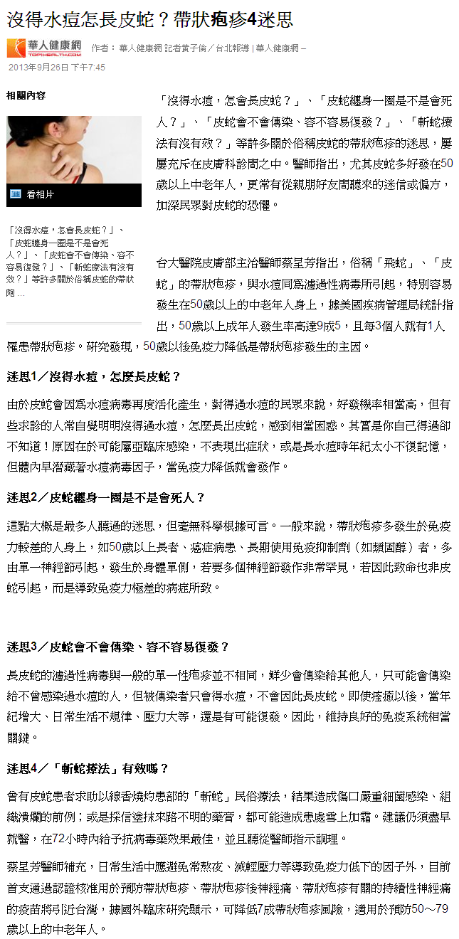 > 沒得水痘怎長皮蛇?帶狀疱疹4迷思